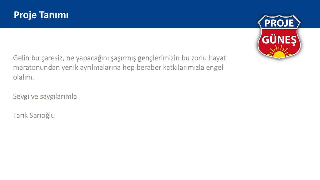 İşte bu an güneş projesinin başlama anı idi. Bu çocuklara eğitimlerine katkı verebilecek, çevremizdeki iyiliksever tecrübeli kişilerle bu çocukları buluşturmalıydık.