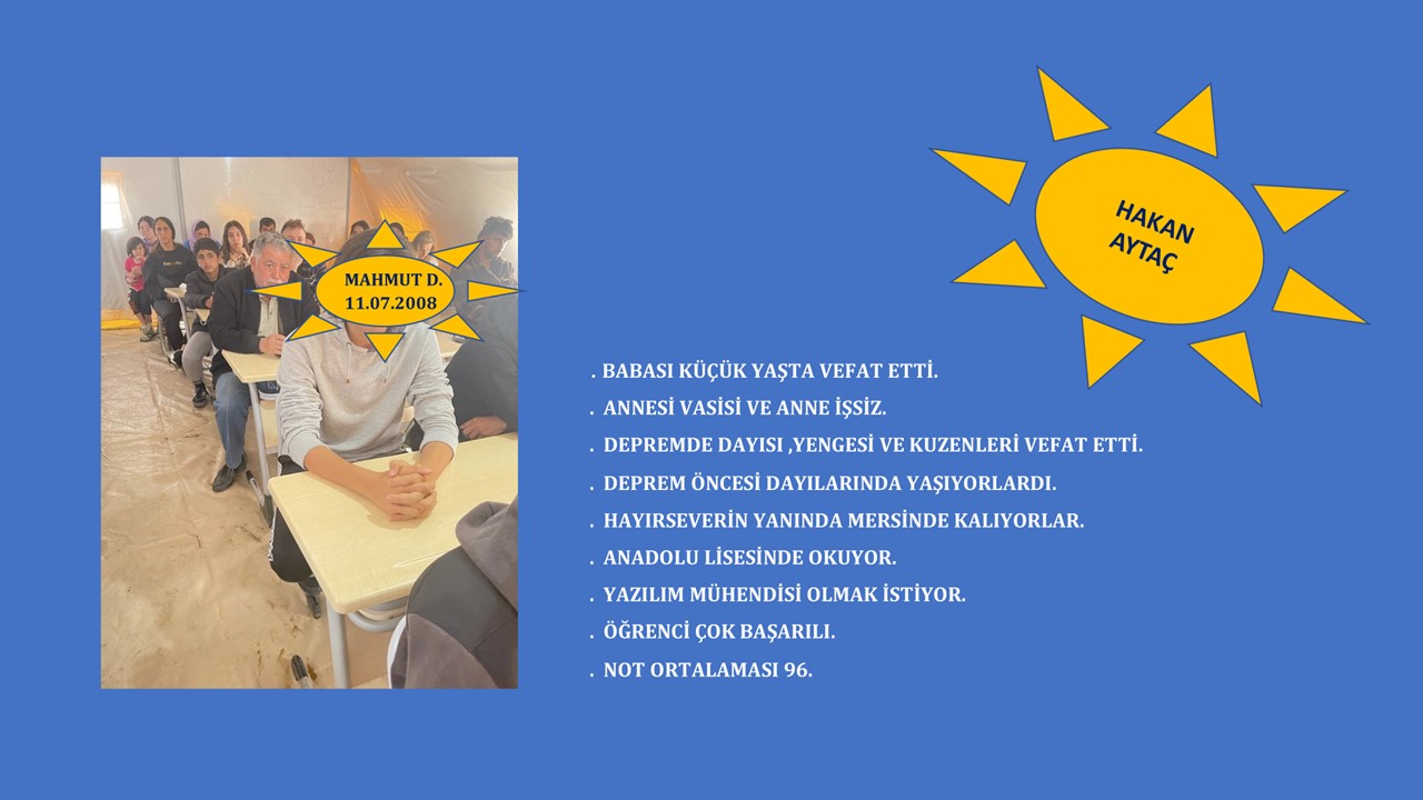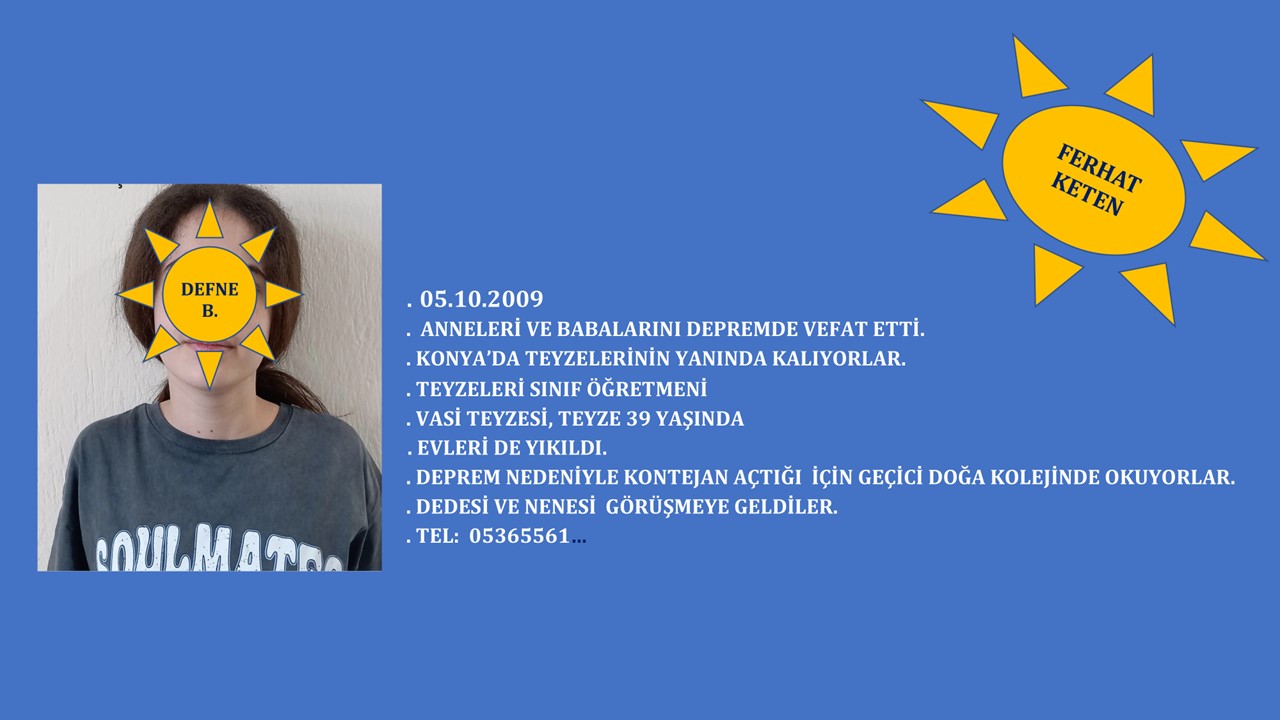Bu depremzede çocuklarımızın hepsinin evleri yıkılmış, çok büyük çoğunluğu babalarını kaybetmiş, kimisi ise bu kadar felaket üzerine annelerini - kardeşlerini kaybetmiş, kimileri de kalacak yerleri dahi olmayan çocuklardı.