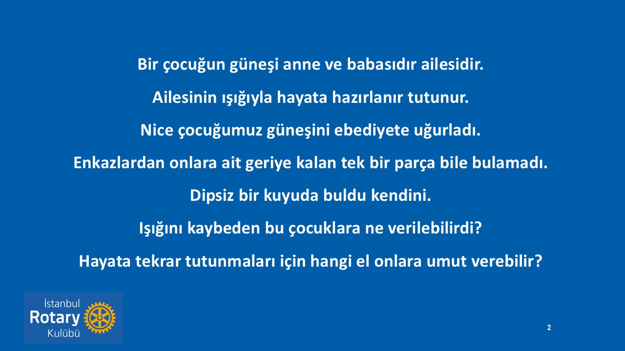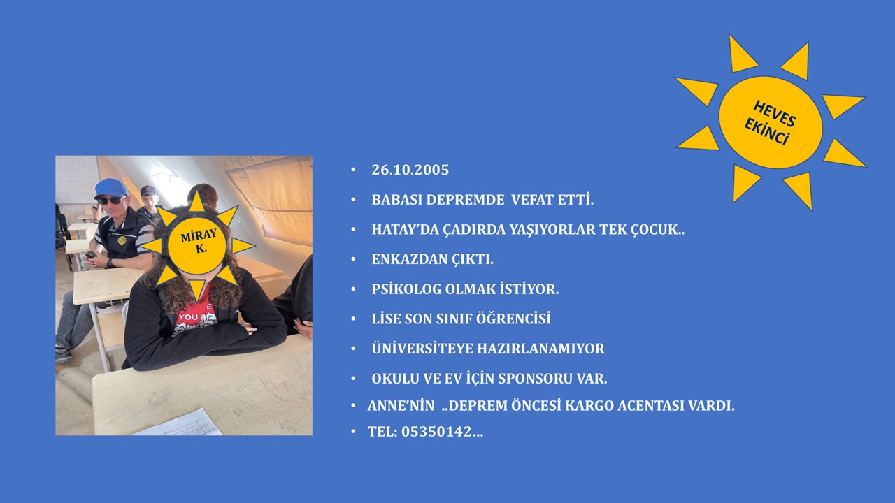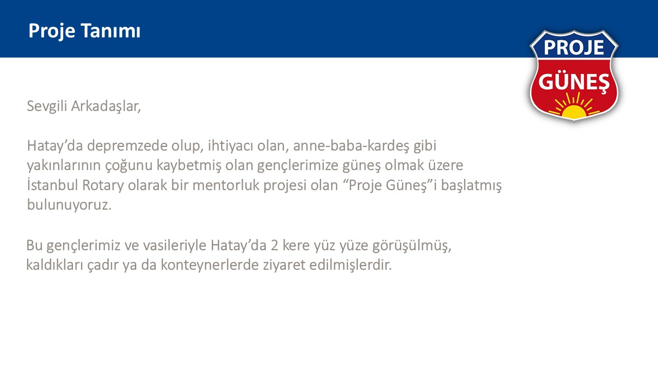 Güneş projesinin temeli 6 Şubat depremi ile beraber İstanbul Rotary üyeleri Tarık Sarıoğlu, Hakan Aytaç ve de İstanbul Rotay Kulübü Geçmiş Dönem Başkanı Ata Köseoğlu ile beraber Antakya'ya seyahatleri yaptığımız sırada atılmıştır.