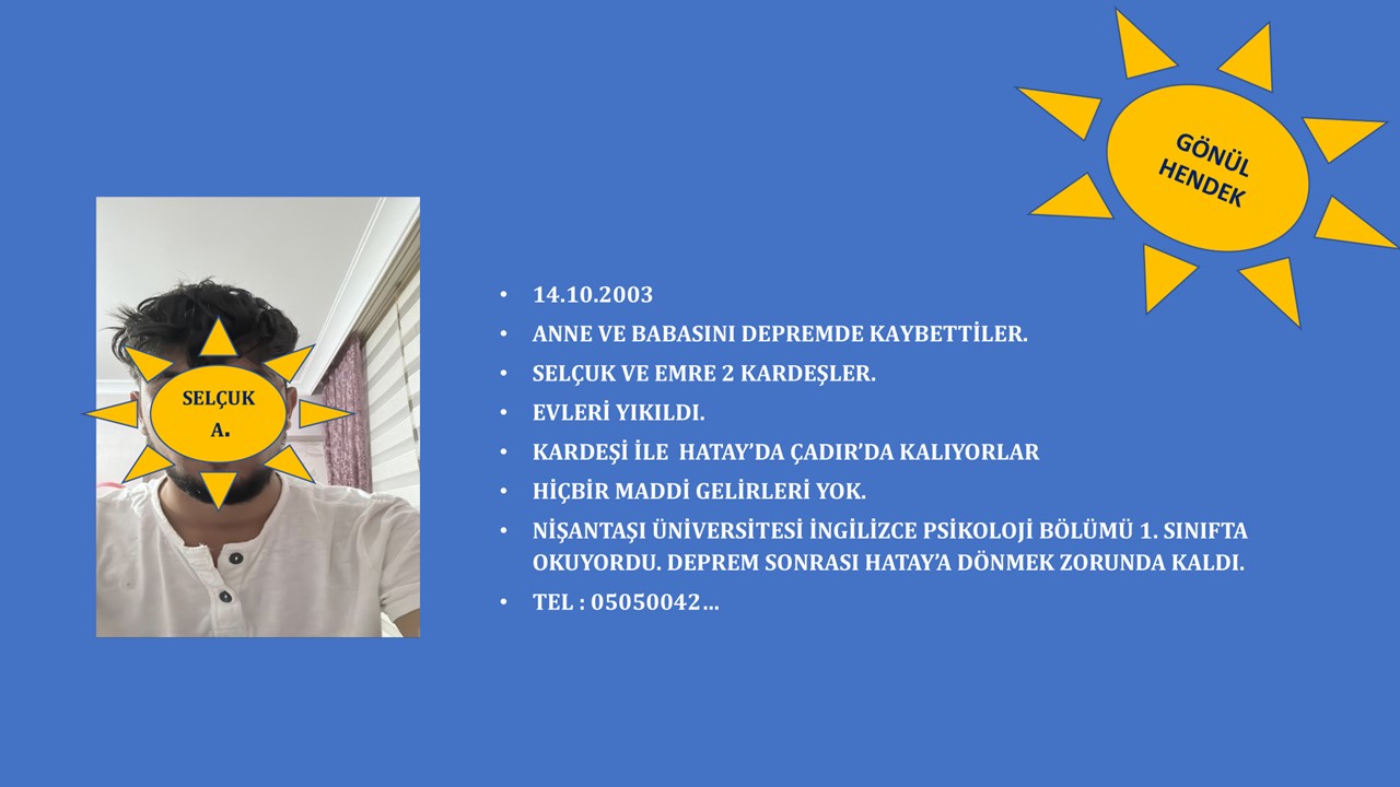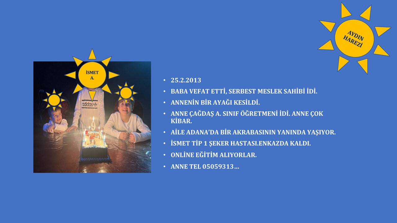 Ön şartımız ilk 3 ay için her ay 2,000 TL onların eğitime katkı verecek, ama haftada birkaç kez telefon görüşmesi, WhatsApp yazışmaları yapıp, arkalarında bir mentorlarının - güneşlerinin, bir ağabey ve ablalarının olduğunu hissettirmekti, artık o çocuklar yalnız değillerdi. Artık bu çocukların güneşleri vardı. Güneşleri olunca da artık bu çocukların umutları vardı, geleceğe dair ümitleri vardı.