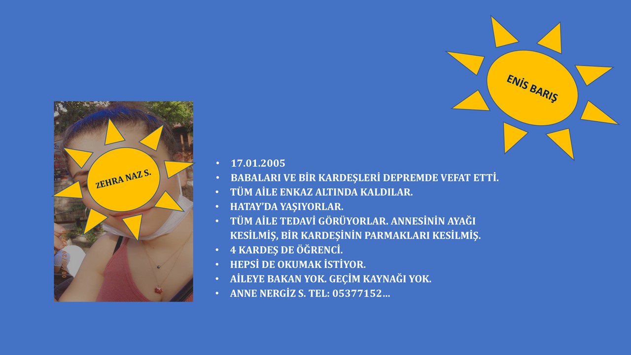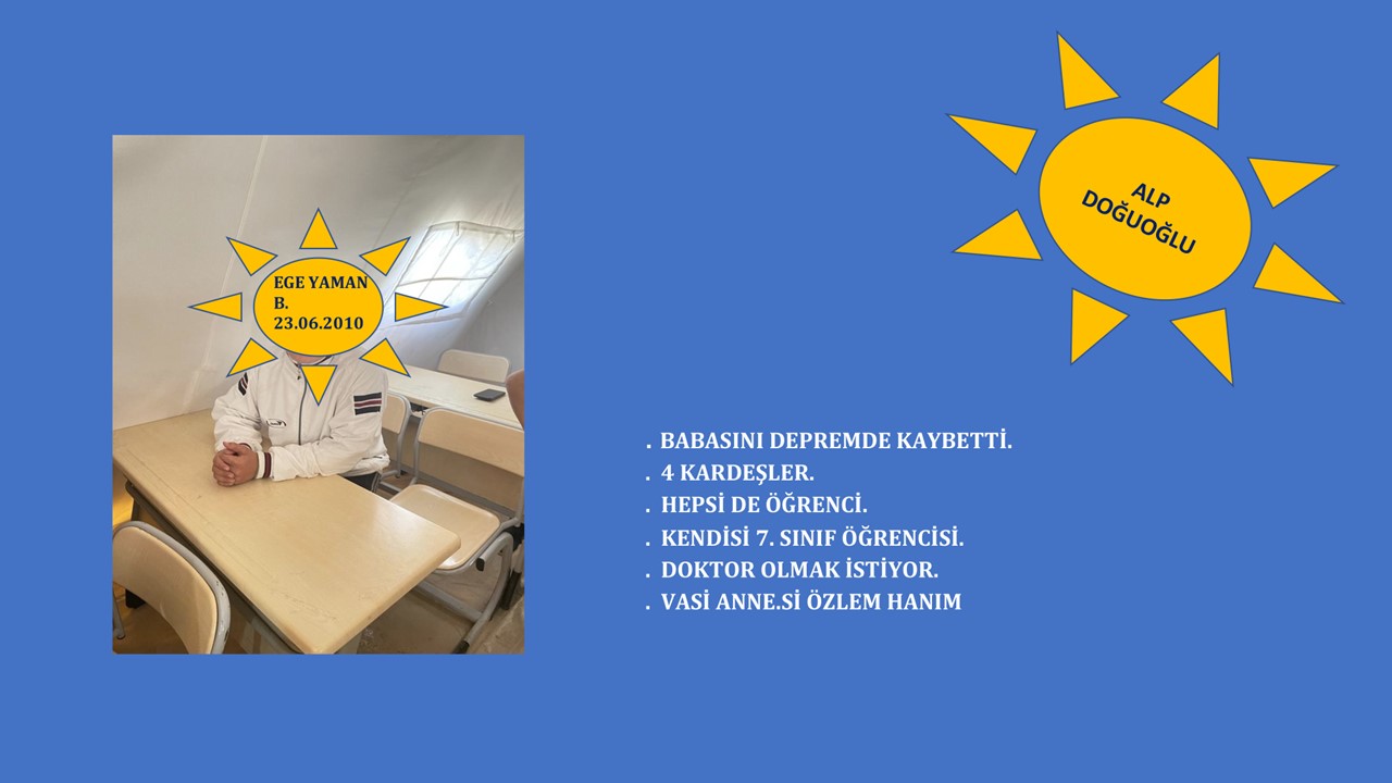 Bu depremzede çocuklarımızın hepsinin evleri yıkılmış, çok büyük çoğunluğu babalarını kaybetmiş, kimisi ise bu kadar felaket üzerine annelerini - kardeşlerini kaybetmiş, kimileri de kalacak yerleri dahi olmayan çocuklardı.