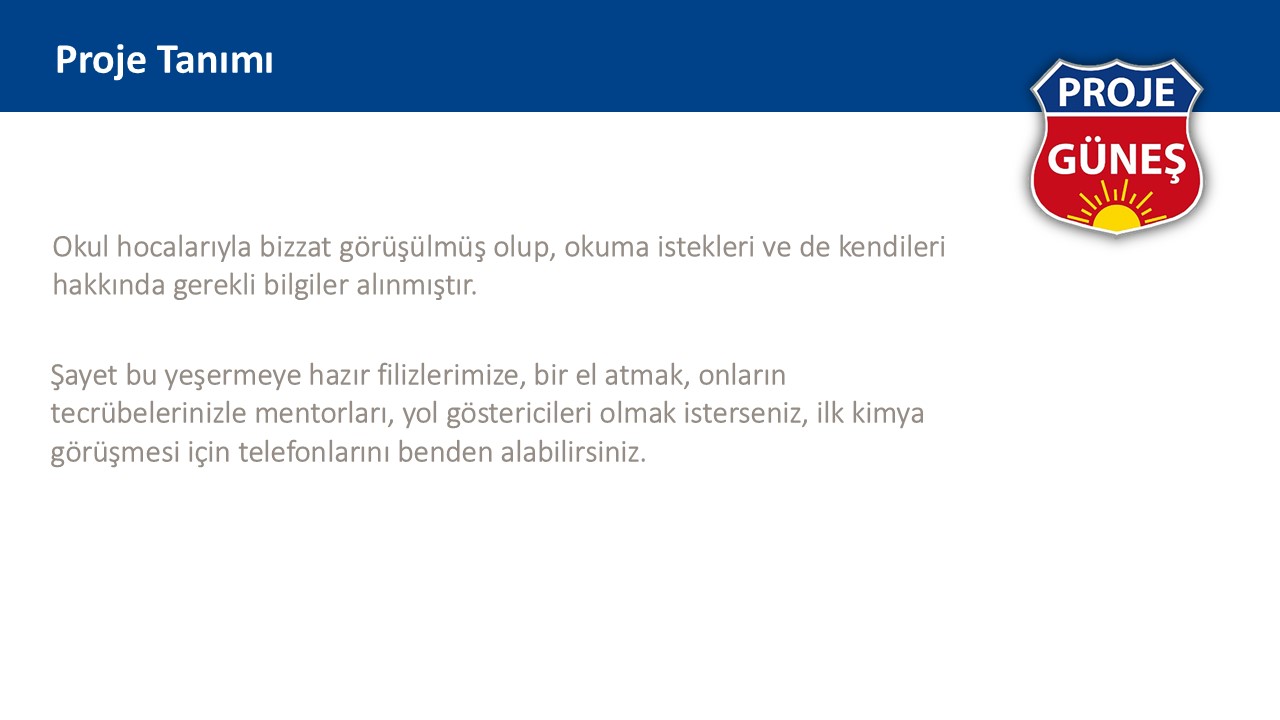 İşte bu an güneş projesinin başlama anı idi. Bu çocuklara eğitimlerine katkı verebilecek, çevremizdeki iyiliksever tecrübeli kişilerle bu çocukları buluşturmalıydık.